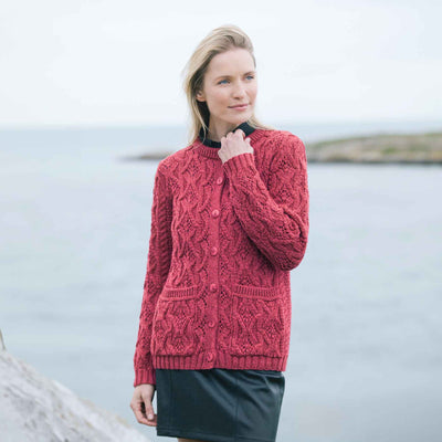 Kildare Classic Merino Crewneck Aran Sweater- Plum