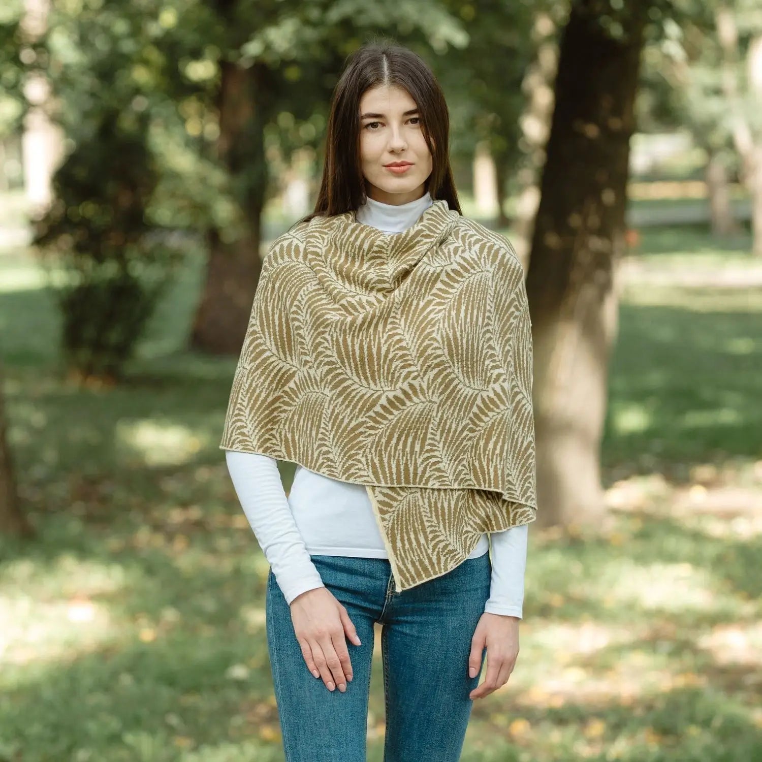 Wrap yourself in the natural elegance of our Newgrange Fern Shawl. A blend of style, comfort, and symbolism, perfect for any occasion.