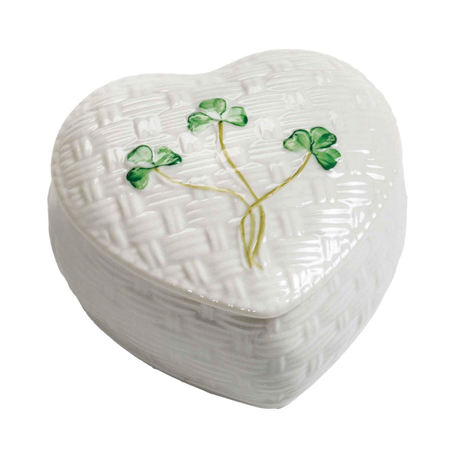 The Kylemore collection is named after the beautiful Kylemore Abbey, in Connemara, Co. Galway. Each piece is based on a basket weave design. The Kylemore Trinket Box is beautifully designed and handcrafted in Ireland. The hand embossed designs, and simple placement of the hand painted shamrocks add to the elegance of this special box. A gift to treasure for years to come.