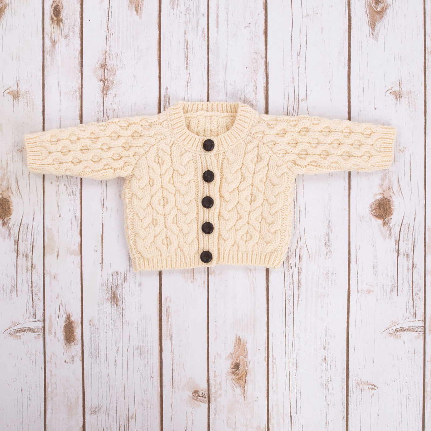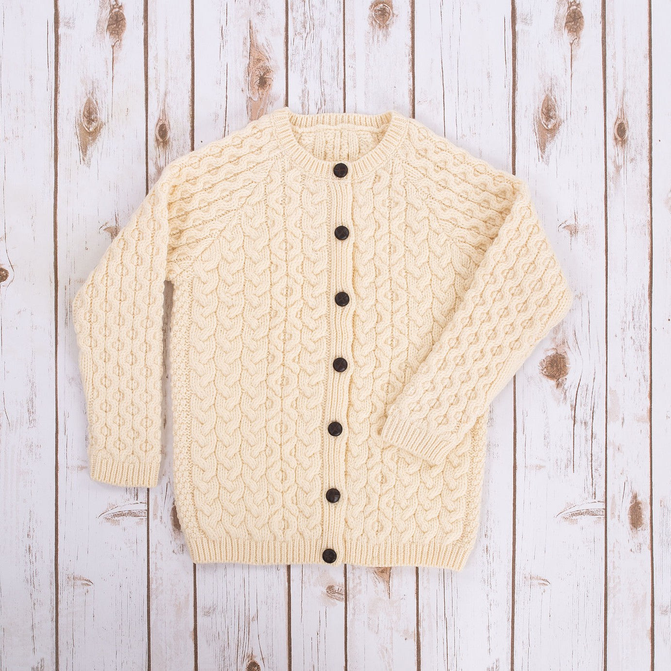 Kids Traditional Merino Wool Aran Button Up Cardigan, Natural