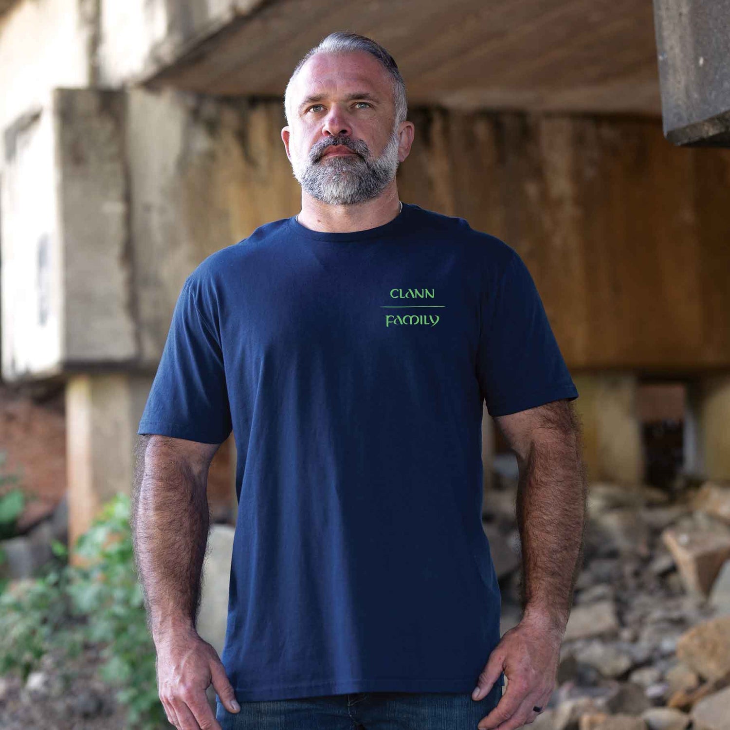 Celebrate the bonds of kinship with the Ogham Family T-Shirt in navy. This stylish tee proudly displays the ancient Ogham symbols down the back, representing "Clann," the Gaelic word for "Family," which is also featured on the front left chest alongside its English translation. Crafted from 100% cotton for ultimate comfort and durability, this t-shirt is a testament to the importance of family in Irish culture. A perfect Irish gift, it offers a unique way to express your heritage and the timeless value of family connections.