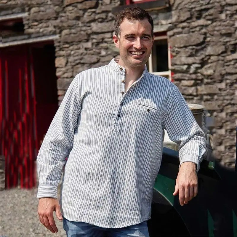 Feel yourself transported back to the old country by slipping on a Classic Grandfather Shirt from Creative Irish Gifts. The traditional white-striped grandfather shirt is made from blue 100% cotton flannelette with a partial button front closure. The generous cut, soft material and classic styling of the shirt make it a wardrobe staple that transcends generations. Of course, the Classic Grandfather Shirt is proudly made in Ireland.