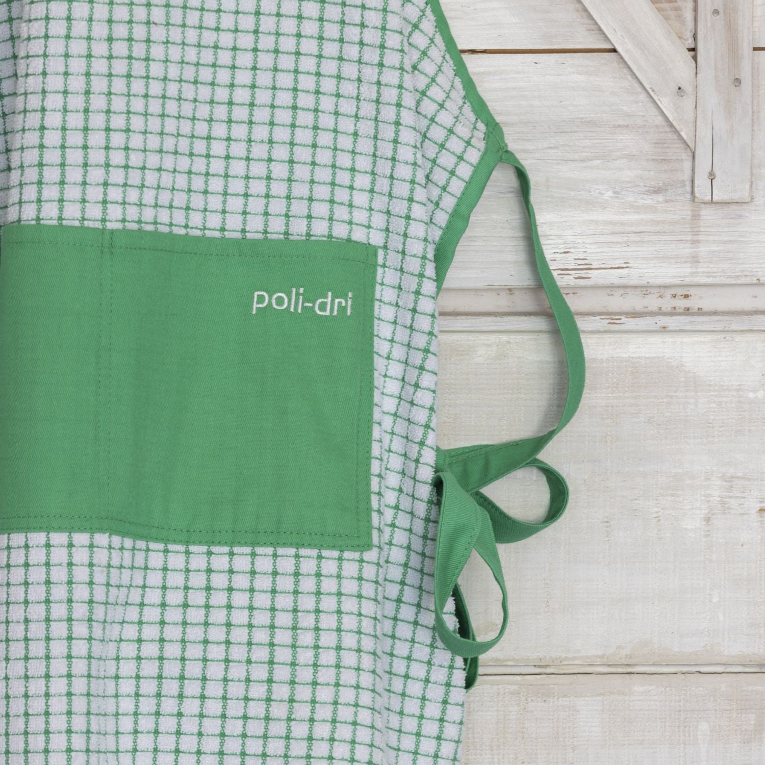 Our Irish Cotton Poli-Dri Apron in Green is made with a double jacquard construction using 100% cotton, giving it a wonderfully soft yet durable feel. The fabric has a plush, towel-like texture that’s highly absorbent, perfect for busy kitchens. It’s easy to care for too – just pop it in the washing machine and it’s ready to go again.