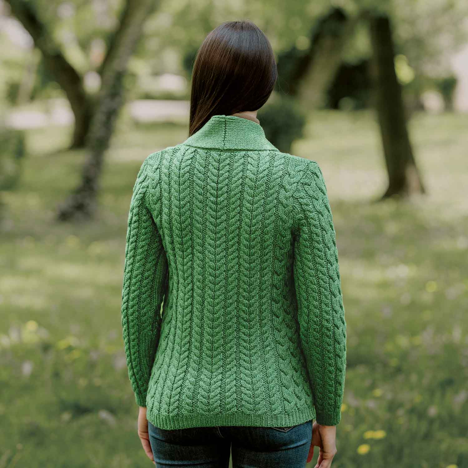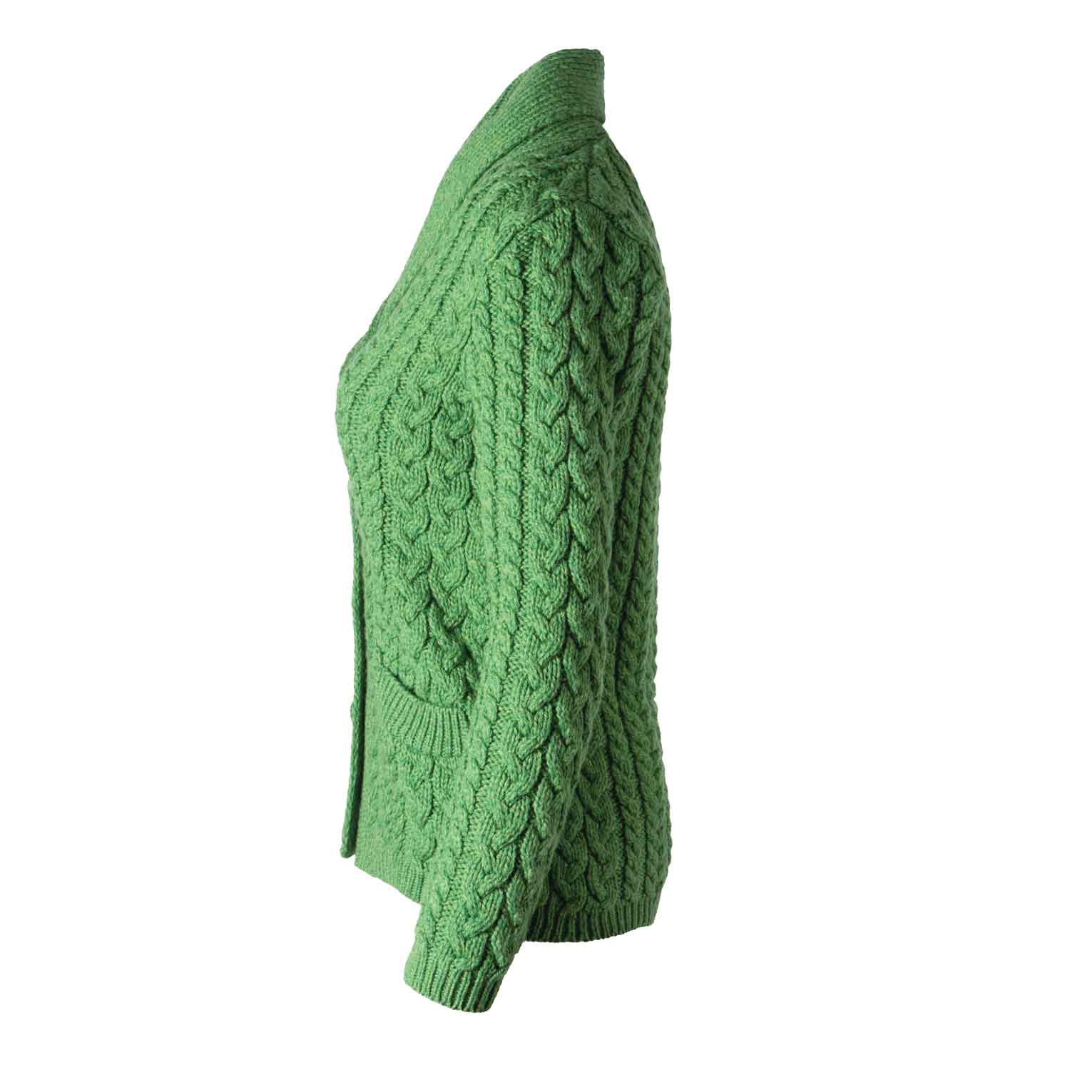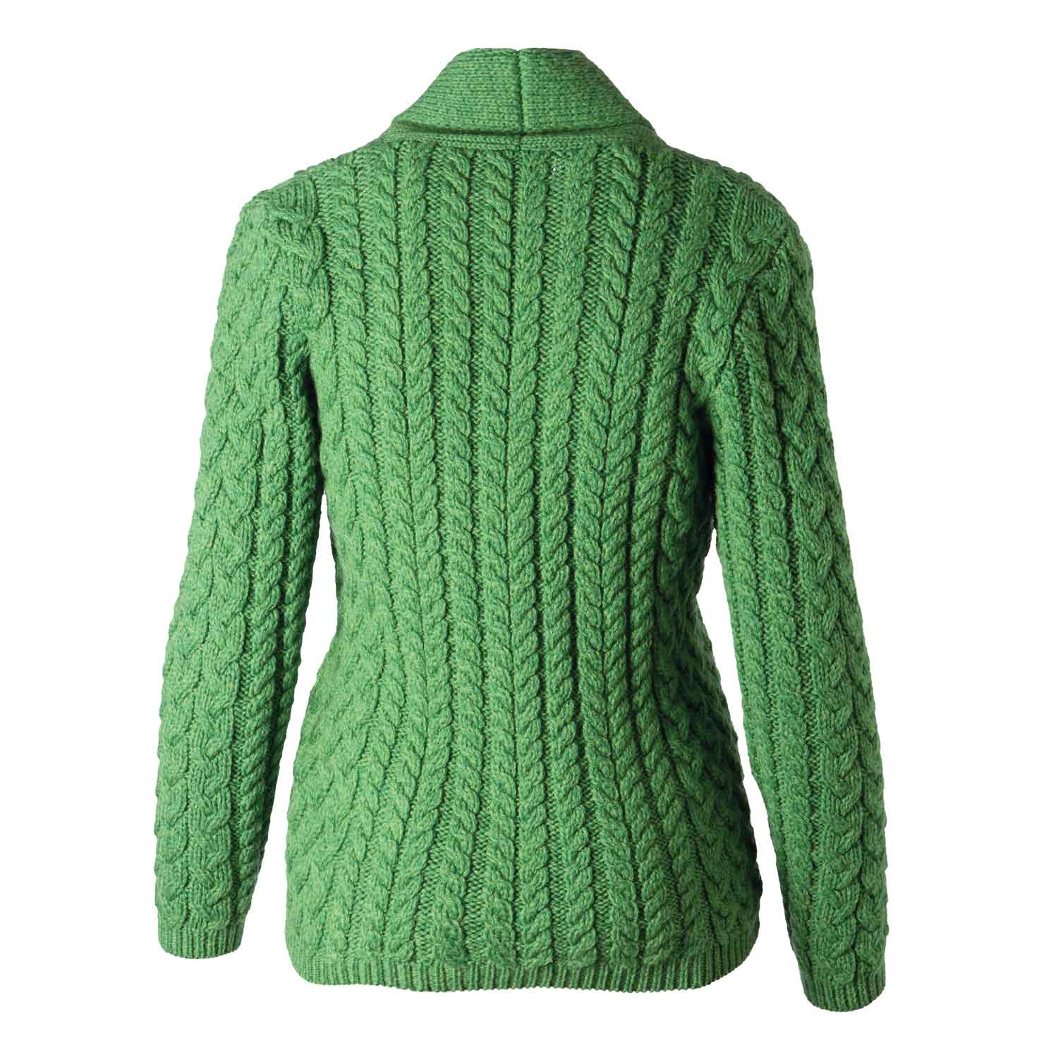 Women's Irish Cable Shawl Neck Cardigan, Green