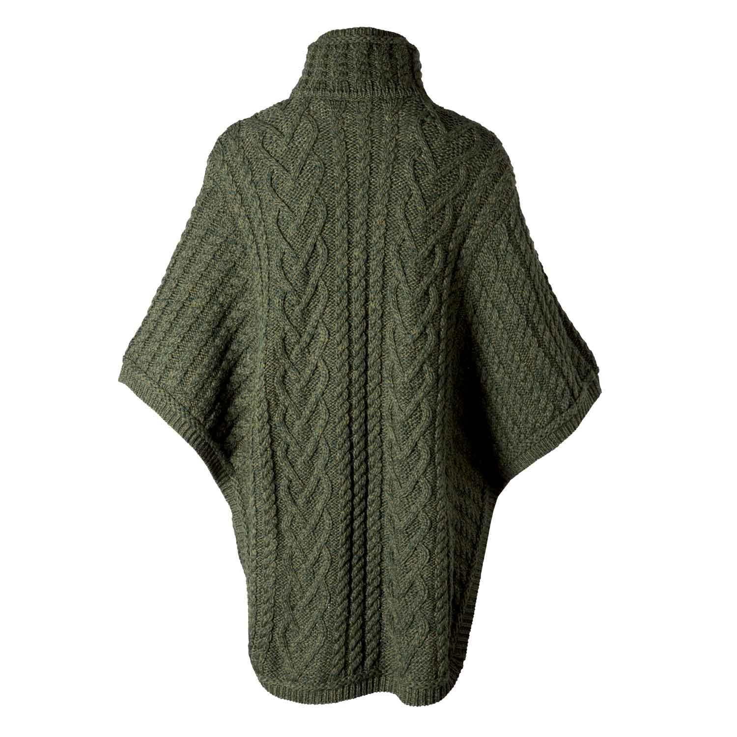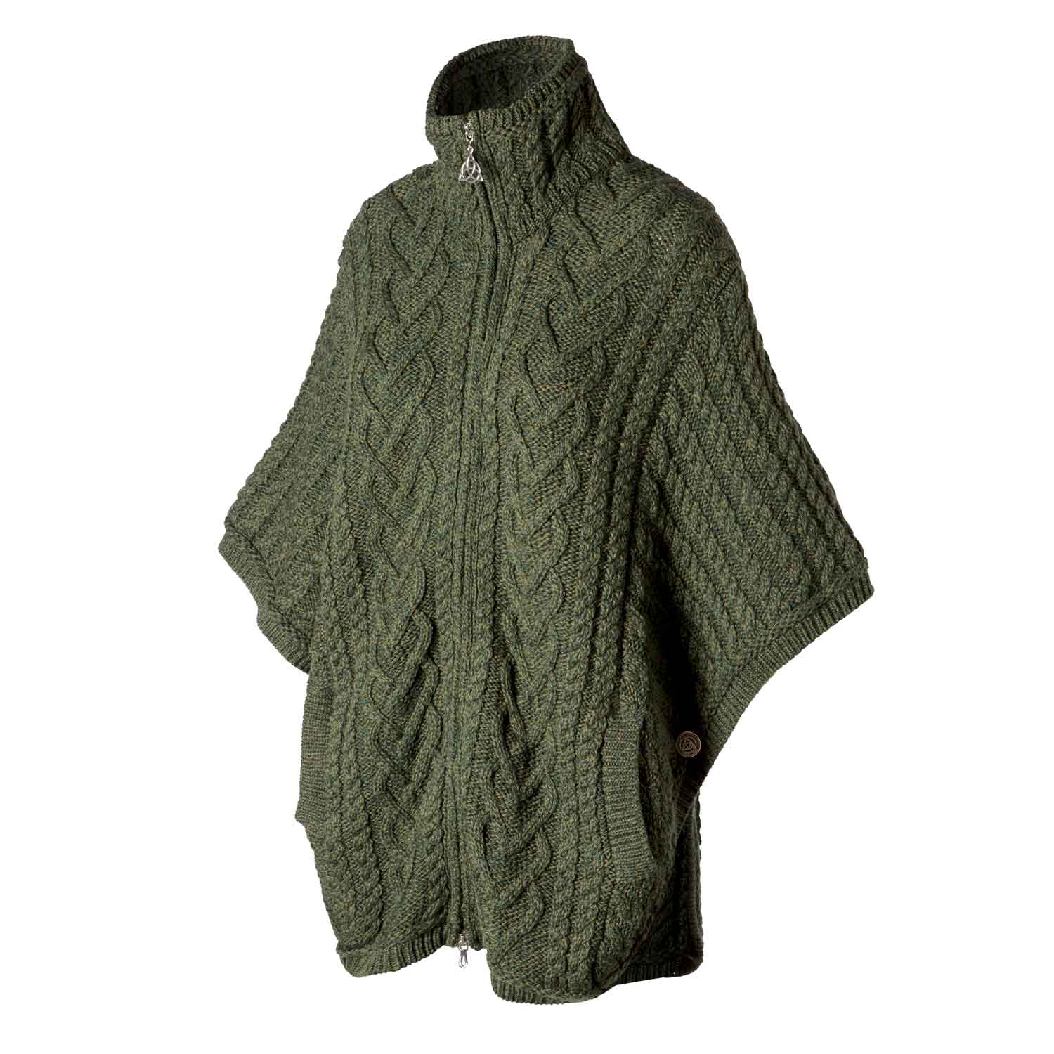 Funnel Neck Irish Zipper Poncho Jacket, Army Green