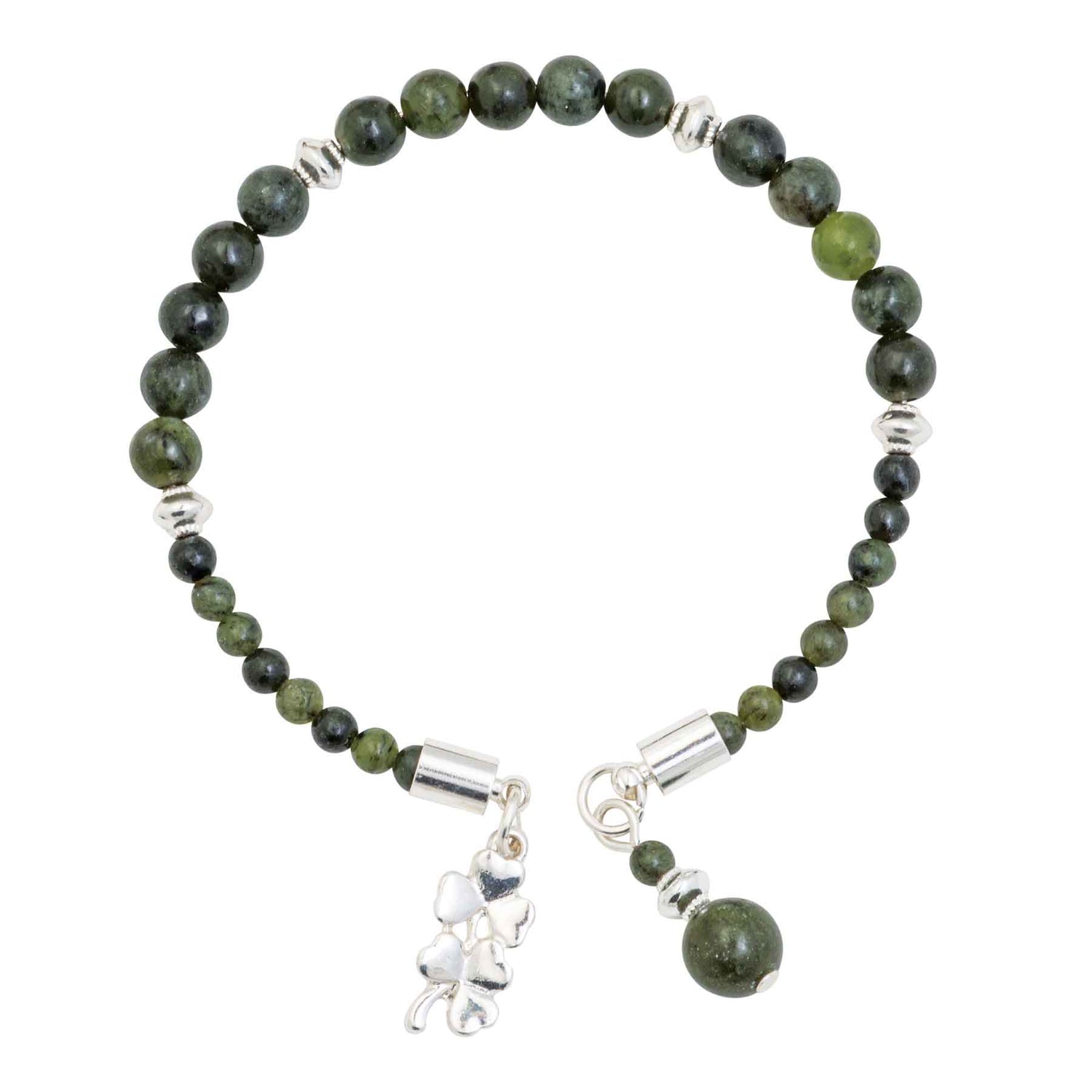 This beautiful and unique bracelet is the perfect way to show Irish pride and faith. It is made in the Emerald Isle with traditional Irish craftsmanship, featuring a horseshoe style construction with a stunning selection of Irish symbols. Choose from three of Ireland's most recognized symbols: the Claddagh, Celtic Trinity knot, or shamrock. The Connemara marble used to create this bracelet gives it an unmistakably authentic Celtic look that will make you stand out in any crowd.