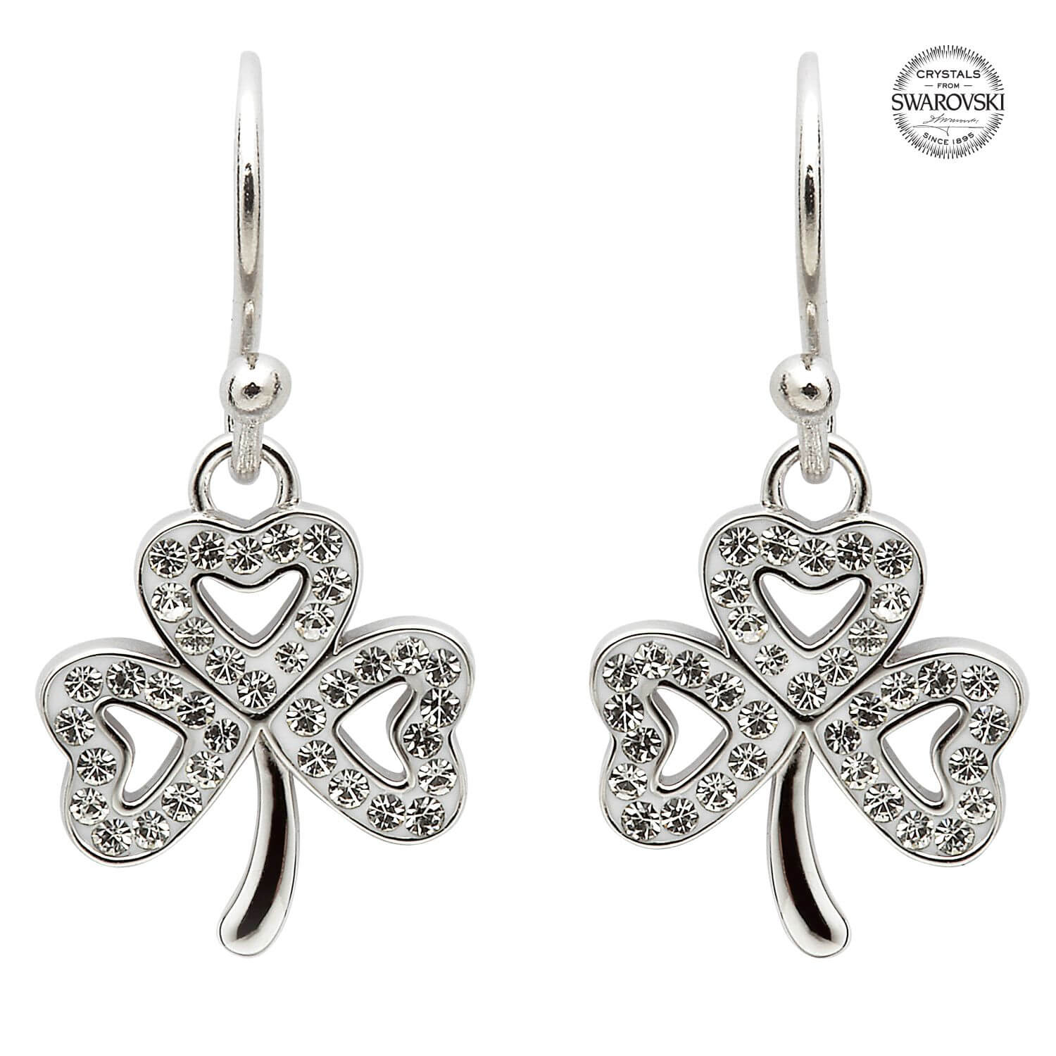Swarovski Celtic Shamrock Silver Drop Earrings