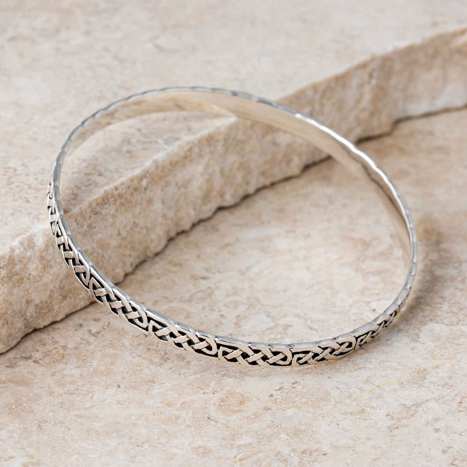 Wrap your wrist in the timeless elegance of our Intricate Celtic Knotwork Bangle Bracelet. A piece of Celtic heritage awaits.