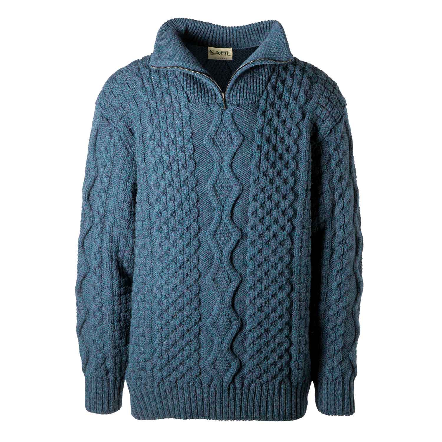 Men's Shawl Collar Fisherman Sweater, Ocean Blue