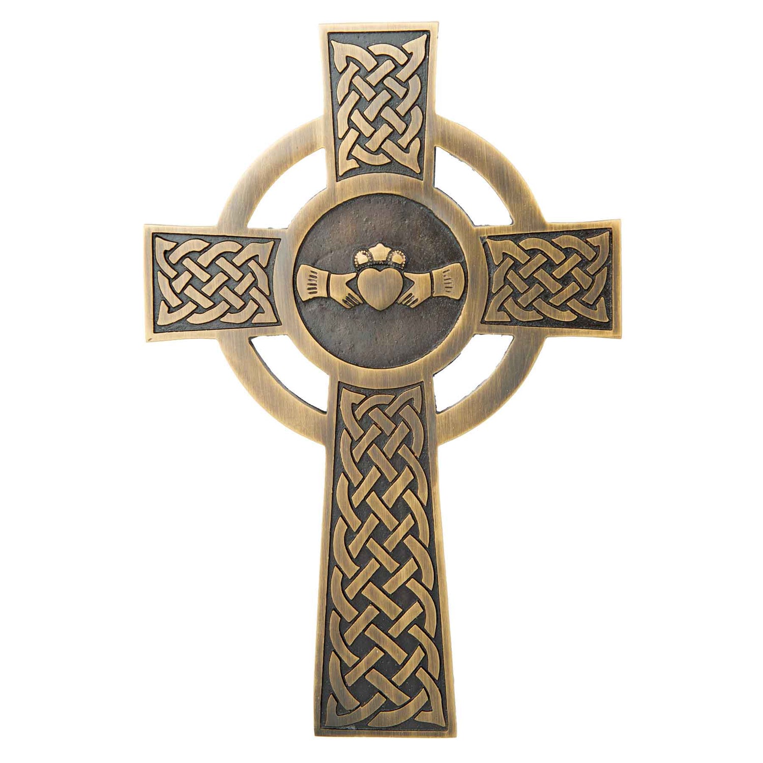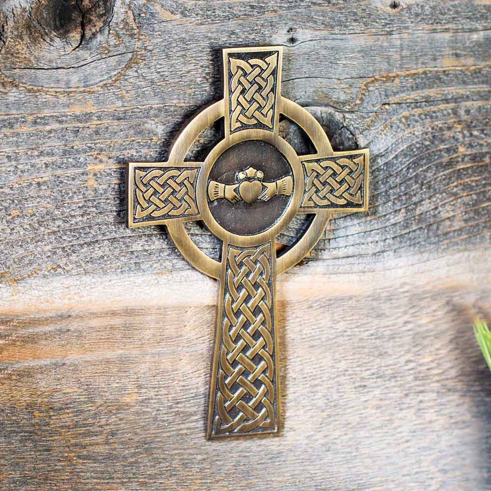 Add a piece of Ireland to your home with the Brass Claddagh Celtic Cross. A symbol of love, loyalty, and heritage awaits.