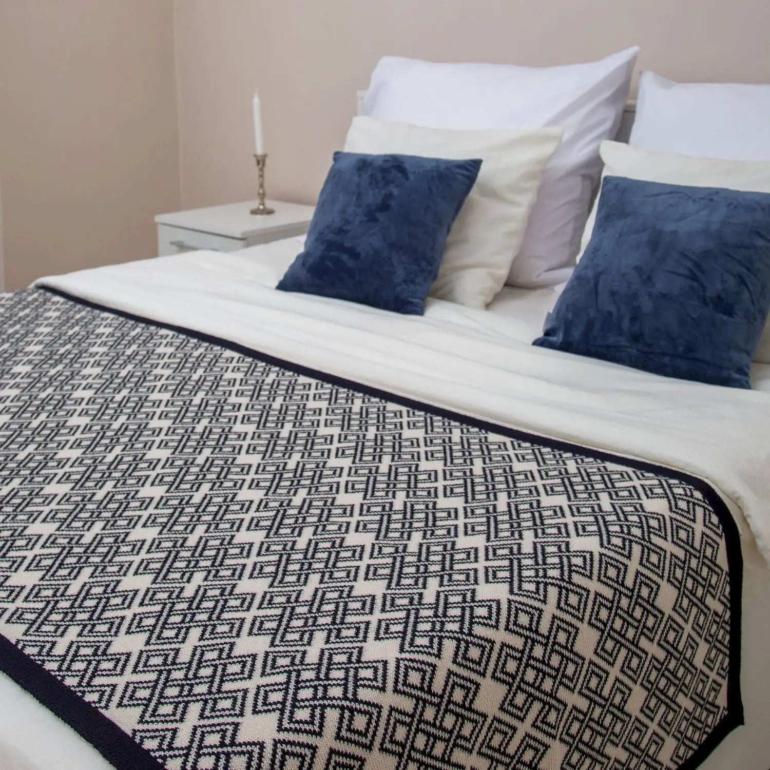 Embrace the warmth and timeless elegance of the Celtic Heritage Wool Throw Blanket in sophisticated Navy. Crafted in the heart of Ireland, this luxurious throw pays tribute to the traditional Irish craft of knitwear, featuring a design that seamlessly blends with modern interiors. Adorned with the Celtic Shield Knot symbolizing protection from all evil, it not only enhances your space but also brings a touch of meaningful artistry. Made from a premium quality wool blend, it offers softness and a luxurious feel against the skin, making it the perfect companion for unwinding. With its generous dimensions of 71" L x 41" W, this throw blanket provides warmth and breathability, ensuring ultimate comfort.