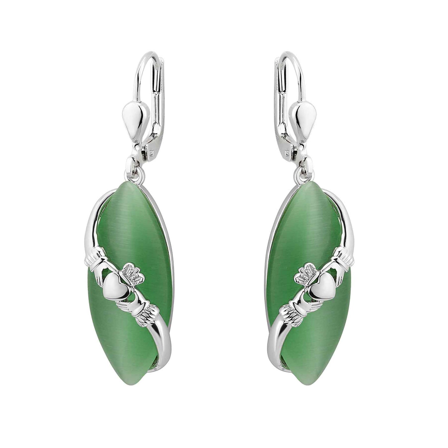 Rhodium plated and green gemstone. .79" L x .31" W. Made in Ireland.