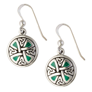 These dainty accessories feature intricate Celtic knotwork in the shape of an encircled Celtic cross with synthetic malachite gemstones in each corner. This element is symbolic of the Christian faith in Ireland, and it also represents knowledge, strength, and eternal love.