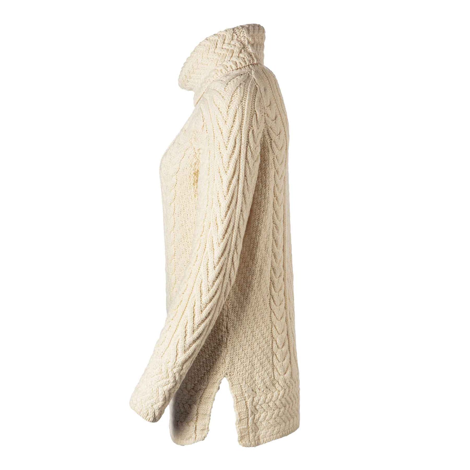 Women's Aran Cowl Neck Sweater, Natural
