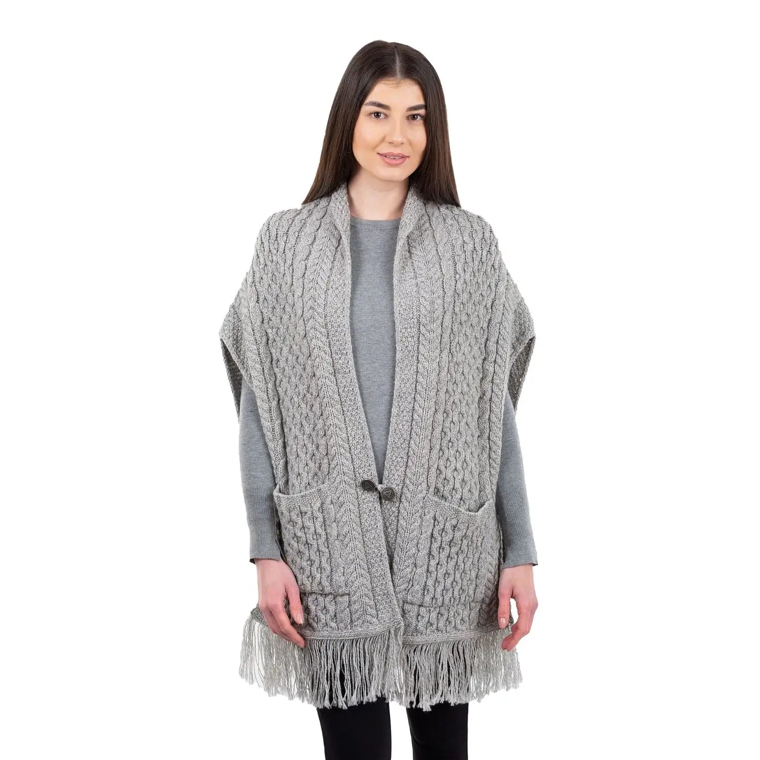 Merino Wool Irish Shawl with Pockets, Light Gray