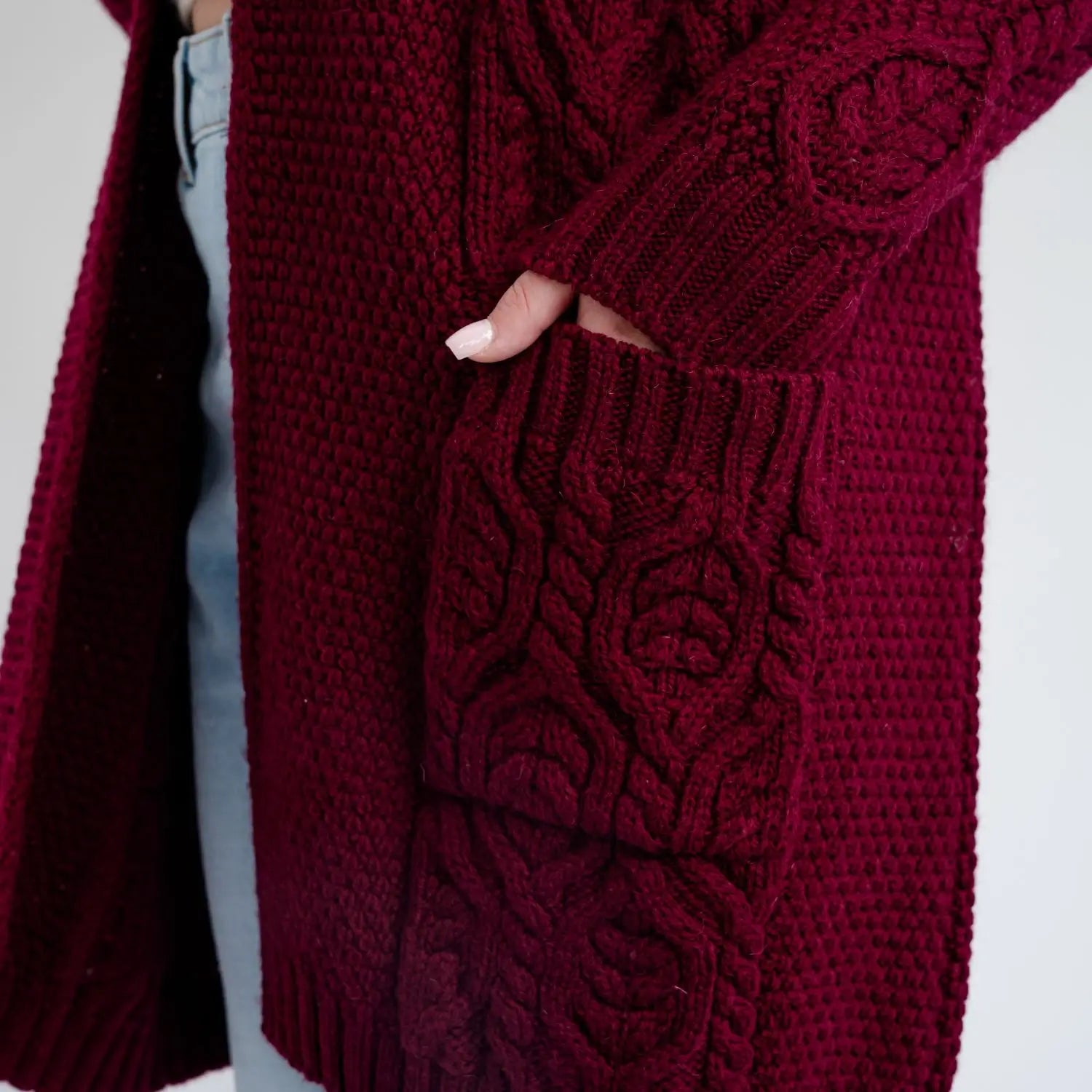 The knit pattern is repeated on the front, back, and sleeves of our ladies cardigan, so no matter which way you’re facing, you’re sure to stand out.
