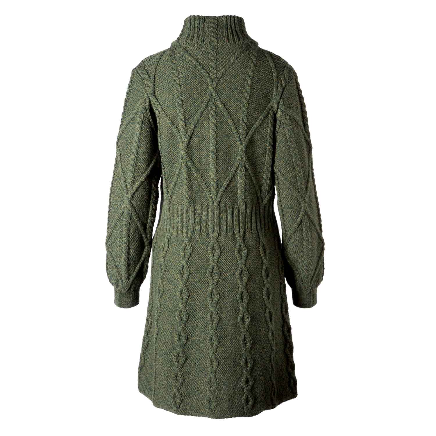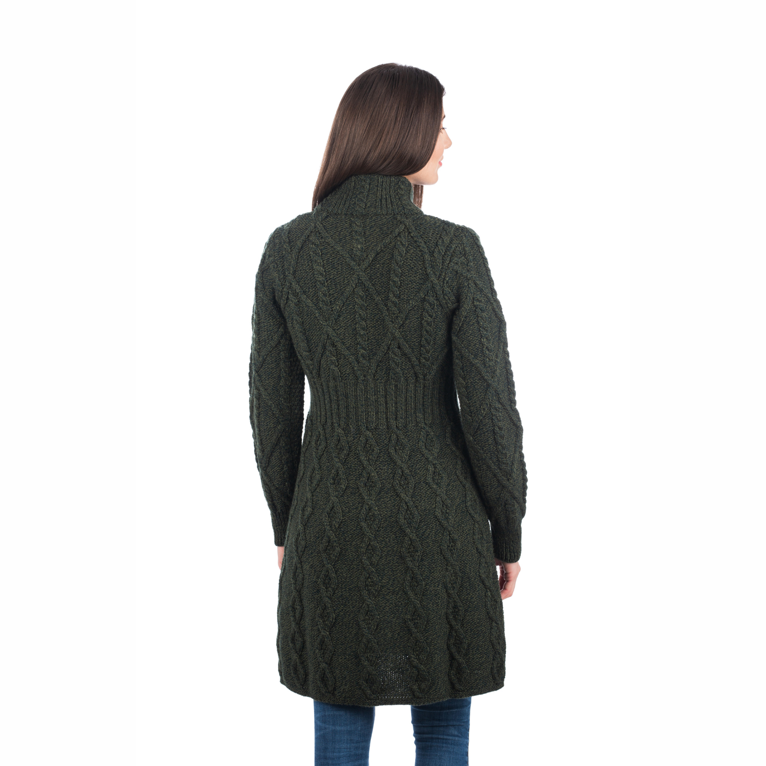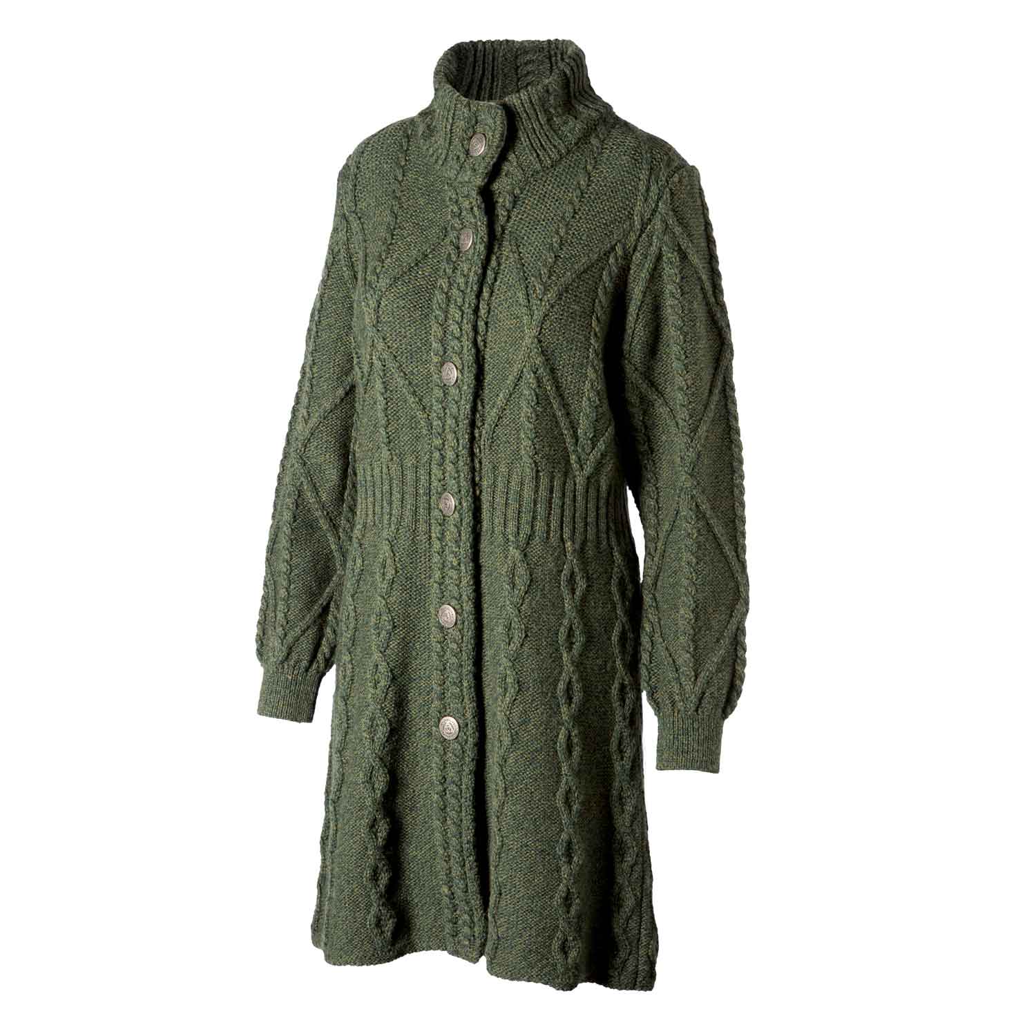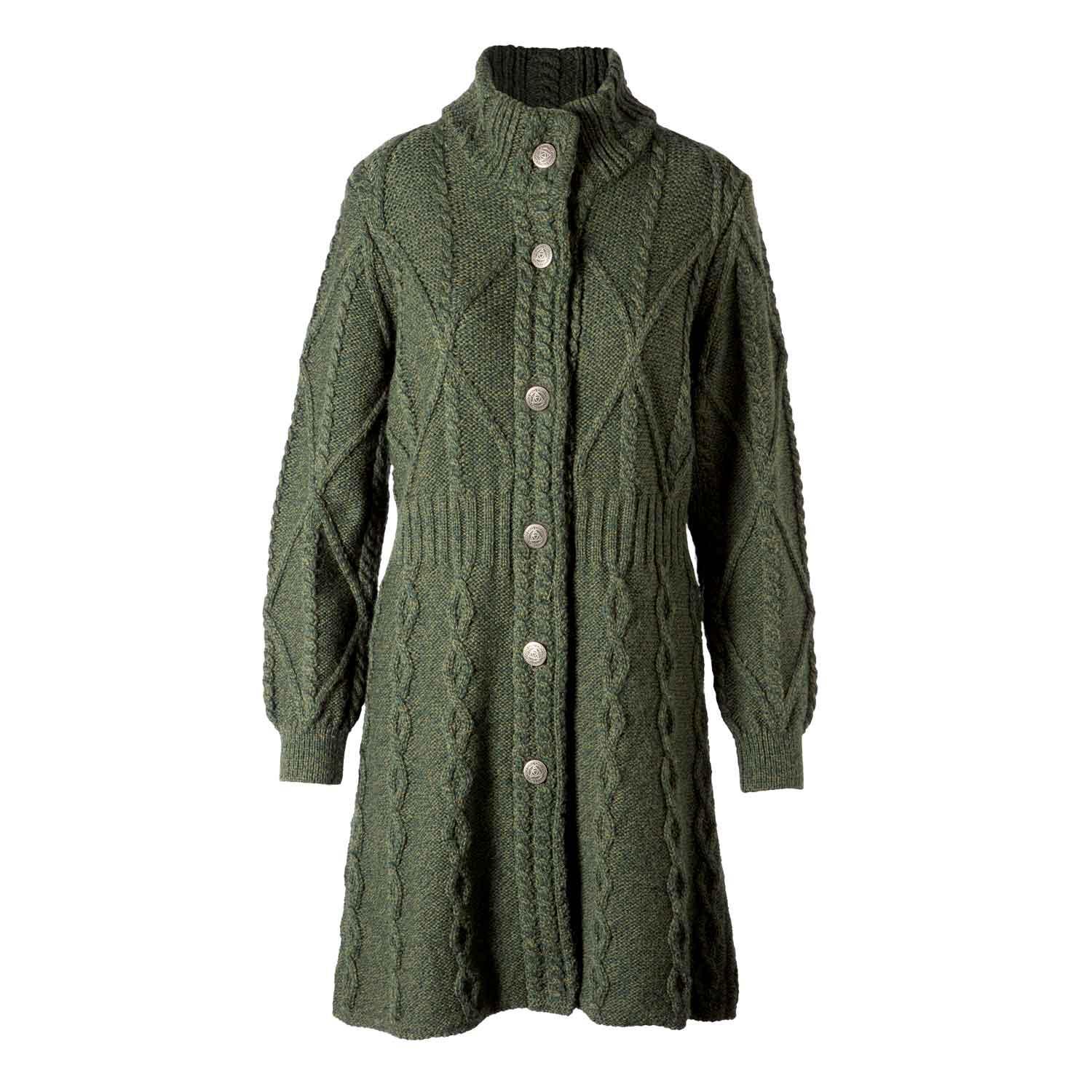 Women's Signature Aran Cable Knit Long Coat, Army Green