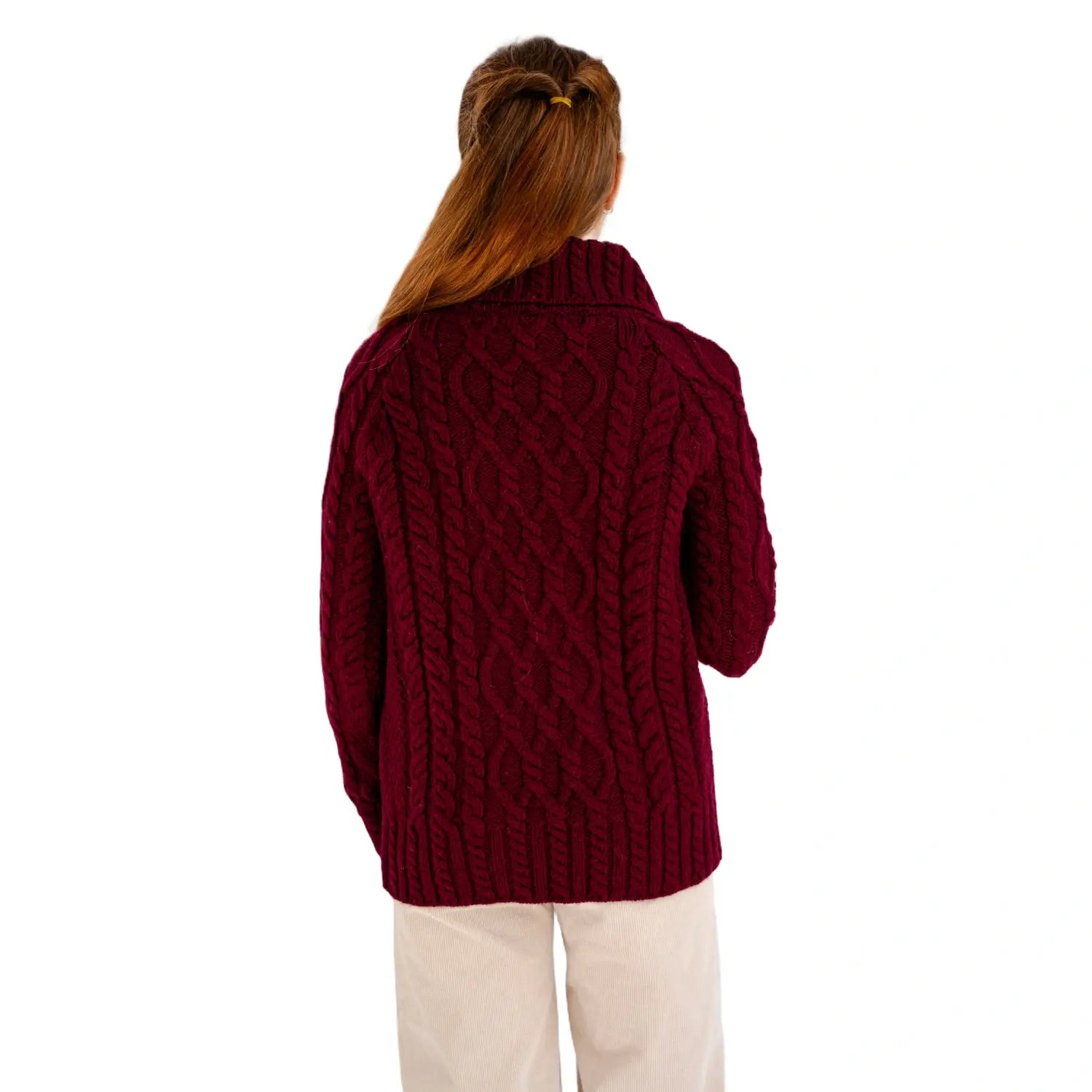Women's Zipper Neck Aran Knit Sweater, Wine